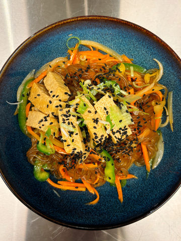 En populär koreansk maträtt som består av en ris skål täckt med olika sorters pålägg, som kött, grönsaker, och sås.